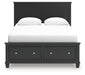 Details | Includes panel headboard, storage footboard with roll slats and rails , Made with hardwood solids, birch veneer and MDF substrate, Side rails feature laminated solid hardwood slat support rails (or LVL) with glued and screwed blocking for added strength, Black painted finish, Round metal drawer knobs with satin nickel-tone finish, 2 smooth-gliding drawers with ball-bearing side glides in footboard, Tapered feet, Bed does not require additional foundation/box spring; accommodates most zero clearance adjustable bases with the addition of a bunkie board, Mattress available, sold separately, Assembly required | |