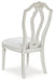 Transform your home into a haven of timeless elegance with this dining chair. Its traditional silhouette, adorned in a classic antiqued white finish, is paired with plush cushioning covered in light pearl gray upholstery. Whether you're settling in at mealtime or working from home, this chair serves your sense of relaxed refinement beautifully.
