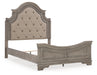 Details | B751B2: Includes queen panel headboard, footboard and rails, Made with acacia wood, birch and acacia veneers, engineered wood and cast resin components, Antiqued gray finish, Ornately shaped headboard with inset upholstered cushion, Foundation/box spring required, sold separately, Mattress not included, sold separately, Assembly required, B751B1: Includes dresser and mirror, Made with acacia wood, birch and acacia veneers, engineered wood and cast resin components, Two-tone finish; antiqued gray body with a rich, deep walnut brown finish on top, Dark bronze-tone bails and knobs, 7 smooth-gliding drawers with dovetail construction, Framed drawer fronts , Overlay decorative corbels, Mirror attaches to back of dresser, Assembly required, | |