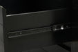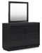 Details B768B2: Includes headboard, footboard and rails, Made with pine solids, veneers and engineered wood substrate, Textured black wood stain with waxy topcoat, Extra wide rails for a bench-like wrap around, Foundation/box spring required, sold separately, Mattress available, sold separately, Assembly required, B768B1: Includes dresser and mirror, Made with pine solids, veneers and engineered wood substrate, Textured black wood stain with waxy topcoat, Hardware-less design, 6 drawers with fully finished interiors, dovetail construction and ball-bearing side glides (top drawers felt lined), Mirror attaches to back of dresser, B768-46: Made with pine solids, veneers and engineered wood substrate, Textured black wood stain with waxy topcoat, Hardware-less design, 5 drawers with fully finished interiors, dovetail construction and ball-bearing side glides (top drawers with felt-lined bottoms),