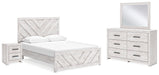 Cayboni Queen Panel Bed with Mirrored Dresser and Nightstand