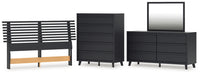 Details | B1013-157: Made with engineered wood (MDF/particleboard/plywood) and decorative laminate for the right balance of affordability and durability, Matte black finish with subtle replicated wood grain, Decorative laminate replicates natural or man-made material surfaces with consistent color, pattern and texture, ¼" bolts (not included) are needed to attach headboard to your existing bed frame, Minor assembly required, B1013B11: Includes dresser and mirror, Made with engineered wood (MDF/particleboard/plywood) and decorative laminate for the right balance of affordability and durability, Matte black finish with subtle replicated wood grain, Decorative laminate replicates natural or man-made material surfaces with consistent color, pattern and texture, 6 smooth-gliding drawers, Drawer interiors are lined with a faux linen laminate for a clean, finished look, Integrated drawer pulls, Framed front and pilasters, Mirror attaches to back of dresser; can also be mounted on wall horizontally or vertically, Safety is a top priority, clothing storage units are designed to meet the most current standard for stability, ASTM F 2057 (ASTM International), Drawers extend out to accommodate maximum access to drawer interior while maintaining safety, Minor assembly required, B1013-345: Made with engineered wood (MDF/particleboard/plywood) and decorative laminate for the right balance of affordability and durability, Matte black finish with subtle replicated wood grain, Decorative laminate replicates natural or man-made material surfaces with consistent color, pattern and texture, 5 smooth-gliding drawers, Drawer interiors are lined with a faux linen laminate for a clean, finished look, Integrated drawer pulls, Framed front and pilasters, Safety is a top priority, clothing storage units are designed to meet the most current standard for stability, ASTM F 2057 (ASTM International), Drawers extend out to accommodate maximum access to drawer interior while maintaining safety, Minor assembly required, | |