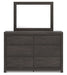 Details PCB3370B4: Includes headboard panel, headboard posts, storage footboard and rails, Made with engineered wood (MDF/particleboard/plywood) and decorative laminate for the right balance of affordability and durability , Dark charcoal finish over replicated oak grain, Decorative laminate replicates natural or man-made material surfaces with consistent color, pattern and texture, 2 smooth-gliding drawers in footboard, Foundation/box spring required, sold separately, Mattress available, sold separately, Assembly required, PCB3370B1: Includes dresser and mirror, Made with engineered wood (MDF/particleboard/plywood) and decorative laminate for the right balance of affordability and durability , Dark charcoal finish over replicated oak grain, Decorative laminate replicates natural or man-made material surfaces with consistent color, pattern and texture, Recessed hand grabs create hardware-less effect, 6 smooth-gliding drawers, Drawer interiors are lined with a faux linen laminate for a clean, finished look , Safety is a top priority, clothing storage units are designed to meet the most current standard for stability, ASTM F 2057 (ASTM International), Drawers extend out to accommodate maximum access to drawer interior while maintaining safety, Mirror attaches to back of dresser; can also be mounted on wall horizontally or vertically, Assembly required, PCB3370-46: Made with engineered wood (MDF/particleboard/plywood) and decorative laminate for the right balance of affordability and durability, Dark charcoal finish over replicated oak grain, Decorative laminate replicates natural or man-made material surfaces with consistent color, pattern and texture, Recessed hand grabs create hardware-less effect, 5 smooth-gliding drawers, Drawer interiors are lined with a faux linen laminate for a clean, finished look, Safety is a top priority, clothing storage units are designed to meet the most current standard for stability, ASTM F 2057 (ASTM International), Drawers extend out to accommodate maximum access to drawer interior while maintaining safety, Assembly required, PCB3370-92: Made with engineered wood (MDF/particleboard/plywood) and decorative laminate for the right balance of affordability and durability, Dark charcoal finish over replicated oak grain, Decorative laminate replicates natural or man-made material surfaces with consistent color, pattern and texture, Recessed hand grabs create hardware-less effect, 2 smooth-gliding drawers, Drawer interiors are lined with a faux linen laminate for a clean, finished look, 2 slim-profile USB-C charging ports, Power cord included; UL Listed, Assembly required,