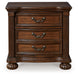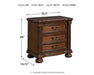 Details B764B5: Includes poster headboard/footboard panels, rails and headboard posts, Made with hardwood solids, cherry veneer with MDF substrates, decorative cast resin and furniture grade plastic components , Cherry brown finish, Headboard with metallic accent filigree, Foundation/box spring required, sold separately, Mattress available, sold separately, Assembly required, B764B1: Includes dresser and mirror, Made with hardwood solids, cherry veneer with MDF substrates, decorative cast resin and furniture grade plastic components , Cherry brown finish, Decorative metal drawer pulls with dark bronze-tone finish, 7 drawers with fully finished interior, dovetail construction and ball-bearing side glides, Mirror attaches to back of dresser, B764-93: Made with hardwood solids, cherry veneer with MDF substrates, decorative cast resin and furniture grade plastic components, Cherry brown finish, Decorative metal drawer pulls with dark bronze-tone finish, 2 drawers with fully finished interior, dovetail construction and ball-bearing side glides, Pull-out tray behind bottom drawer,