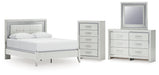 Zyniden Queen Upholstered Panel Bed with Mirrored Dresser and Chest