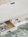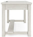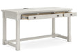 Details | Made with hardwood solids, oak veneer and MDF substrates, Antiqued white finish with wood grain texture, Round metal knobs with dark bronze-tone finish, Smooth-gliding accessories drawer, Wide keyboard drawer with drop-down front, 110V power supply with USB-A and USB-C charging ports, Power cord included; UL Listed, Assembly required | |