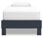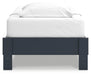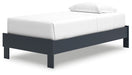 Details | Twin platform bed includes footboard, rails and platform (does not include headboard), Made with engineered wood (MDF/particleboard/plywood) and decorative laminate for the right balance of affordability and durability, Matte navy blue finish, Decorative laminate replicates natural or man-made material surfaces with consistent color, pattern and texture, Bed does not require additional foundation/box spring; accommodates most zero clearance adjustable bases, Mattress available, sold separately, Assembly required | |