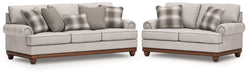 Details | PC5680338: Corner-blocked frame, Attached back and reversible seat cushions, High-resiliency foam cushions wrapped in poly fiber, Accent pillows included, Pillows with soft polyfill, Polyester upholstery, Decorative turned legs with faux wood finish, Platform foundation system resists sagging 3x better than spring system after 20,000 testing cycles by providing more even support, Smooth platform foundation maintains tight, wrinkle-free look without dips or sags that can occur over time with sinuous spring foundations, PC5680335: Corner-blocked frame, Attached back and reversible seat cushions, High-resiliency foam cushions wrapped in poly fiber, Accent pillows included, Pillows with soft polyfill, Polyester upholstery, Decorative turned legs with faux wood finish, Platform foundation system resists sagging 3x better than spring system after 20,000 testing cycles by providing more even support, Smooth platform foundation maintains tight, wrinkle-free look without dips or sags that can occur over time with sinuous spring foundations, | |