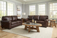 Details | 5210738: Corner-blocked frame, Attached back and loose seat cushions, High-quality foam cushions wrapped in poly fiber, 100% top grain leather covers inside areas such as the back, seat and arm cushions; skillfully matched faux leather covers the remaining areas, Due to its natural origin, real leather can show individual characteristics such as healed scars, growth marks, grain variation and shade variation, Natural variations make each hide unique and do not detract from the wearing qualities of leather, Pigmented corrected grain leather with slight embossing and a light contrast spray effect to add more depth, Exposed feet with faux wood finish, Platform foundation system resists sagging 3x better than spring system after 20,000 testing cycles by providing more even support, Smooth platform foundation maintains tight, wrinkle-free look without dips or sags that can occur over time with sinuous spring foundations, 5210735: Corner-blocked frame, Attached back and loose seat cushions, High-quality foam cushions wrapped in poly fiber, 100% top grain leather covers inside areas such as the back, seat and arm cushions; skillfully matched faux leather covers the remaining areas, Due to its natural origin, real leather can show individual characteristics such as healed scars, growth marks, grain variation and shade variation, Natural variations make each hide unique and do not detract from the wearing qualities of leather, Pigmented corrected grain leather with slight embossing and a light contrast spray effect to add more depth, Exposed feet with faux wood finish, Platform foundation system resists sagging 3x better than spring system after 20,000 testing cycles by providing more even support, Smooth platform foundation maintains tight, wrinkle-free look without dips or sags that can occur over time with sinuous spring foundations, | |