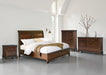 Details | Includes queen sleigh headboard, rails and storage footboard with roll slats, Made with hardwood solids, select hardwood veneer and MDF substrate, Warm brown cherry finish, Dark bronze-tone knobs, 2 smooth-gliding drawers in footboard, Bed does not require additional foundation/box spring; accommodates most zero clearance adjustable bases, Mattress available, sold separately, Assembly required | |
