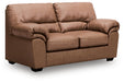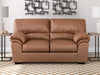 Modern comfort never looked so good. Sporting supremely soft yet durable cushions accented with high-fashion jumbo stitching, this stunning loveseat is the ultimate choice in comfortably cool, contemporary style. Its caramel-hued faux leather indulges with an upscale feel and wows like the real thing.