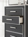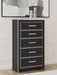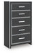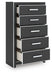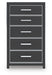 Details Made with engineered wood (MDF/particleboard/plywood) and decorative laminate for the right balance of affordability and durability, Matte black finish with subtle replicated wood grain, Decorative laminate replicates natural or man-made material surfaces with consistent color, pattern and texture, Chrome-tone accents, Large-scale chrome-tone handles with faceted details, 5 smooth-gliding drawers, Drawer interiors are lined with a faux linen laminate for a clean, finished look, Safety is a top priority, clothing storage units are designed to meet the most current standard for stability, ASTM F 2057 (ASTM International), Drawers extend out to accommodate maximum access to drawer interior while maintaining safety, Minor assembly required