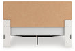 Details | Includes upholstered panel headboard, storage footboard, platform rails and roll slats , Made with engineered wood (MDF/particleboard/plywood) and decorative laminate for the right balance of affordability and durability , Matte white finish with subtle replicated wood grain , Decorative laminate replicates natural or man-made material surfaces with consistent color, pattern and texture , Polyester upholstery, Chrome-tone and glitter accents, Large-scale chrome-tone handles with faceted details, 2 smooth-gliding drawers , Drawer interiors are lined with a faux linen laminate for a clean, finished look, Bed does not require additional foundation/box spring; accommodates most zero clearance adjustable bases with the addition of a bunkie board, Mattress available, sold separately, Minor assembly required | |